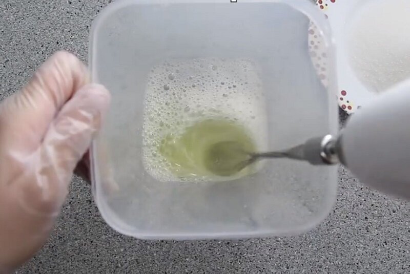 13. Следом с помощью миксера взбивают лимонный сок и белки, который пойдут на глазурь.