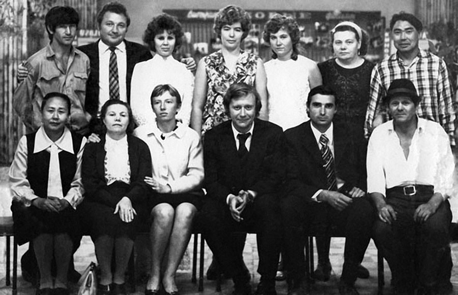 Андрей Миронов с сотрудниками одного из кинотеатров города Капчагай, что недалеко от Алма- Аты.